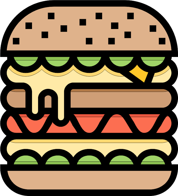 نان و سس مخصوص برگر، کاهوی فرانسوی، خیارشور، گوجه، 2 * برگر 180 گرمی ،120 گرم سینه مرغ، 4 * پینر گودا + سیب زمینی و سالاد کلم