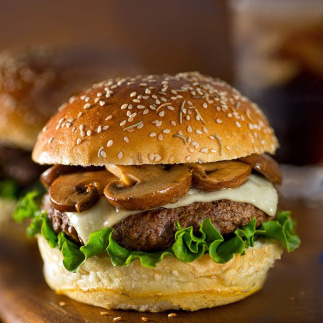 نان و سس مخصوص برگر، کاهوی فرانسوی، خیارشور، گوجه، 180 گرم همبرگر دستی، قارچ، پنیر پیتزا، + سیب زمینی و سالاد کلم