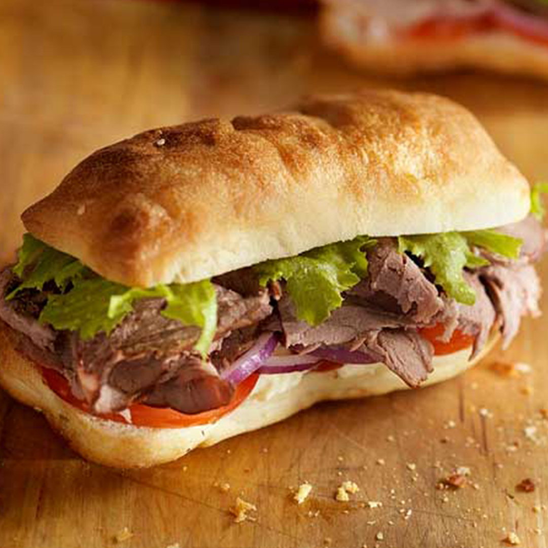 نان مخصوص، سس مخصوص رست بیف، 120 گرم گوشت رست بیف، قارچ ، گوجه گیلاسی، سس باربیکیو، + سیب زمینی و سالاد کلم